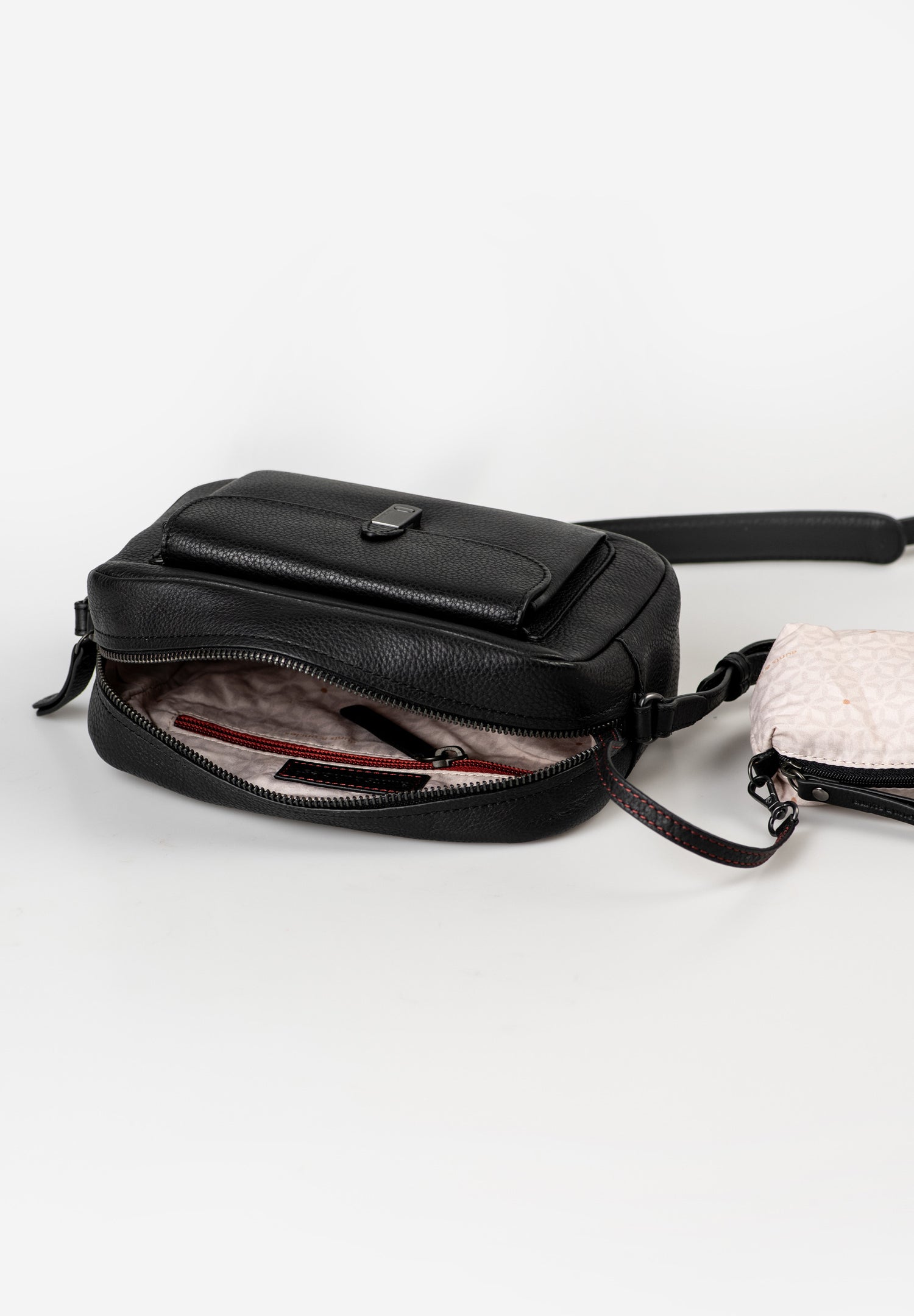 Posh scores with organized storage space in a timeless design. The classic box shape and the elegant, slim closure on the front give the crossbody bag an effortless elegance. The main compartment of the camera bag is equipped with a practical zipper. The front pocket offers quick access to important items. The additionally secured zipper pocket on the back provides space for smaller items that need to be stored particularly securely. The organized interior includes various pockets, a removable textile pouch and a key strap. A shoulder pad ensures comfortable carrying.