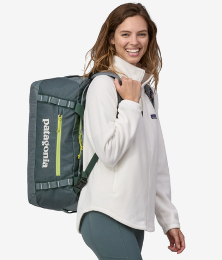 Patagonias Black Hole® Duffel 40L is perfect for small loads and long weekends. It delivers the same legendary performance you expect from our Black Hole bags, but with a huge step toward impact reduction with 100% recycled body fabric, lining and webbing, and now a pioneering recycled TPU-film laminate with a sleek matte finish. This duffel size meets most airline and train carry-on requirements. Made in a Fair Trade Certified™ factory.