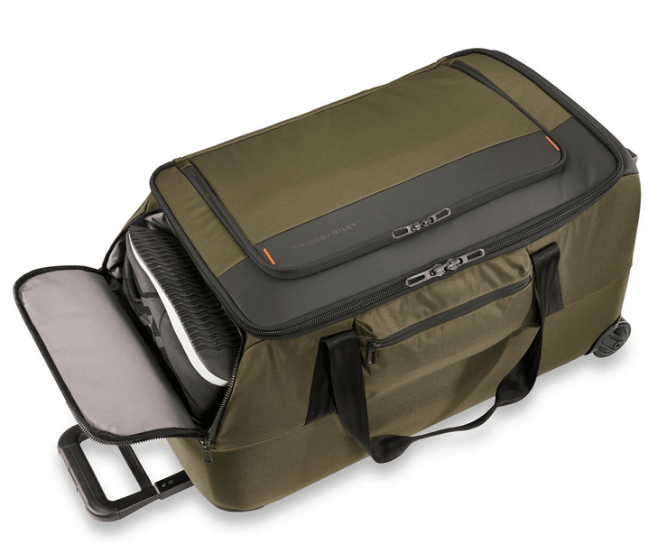 - Large zip-around lid pocket with 2" expansion into bag provides great storage of and quick access to key travel essentials like a jacket, sweater or laptop
