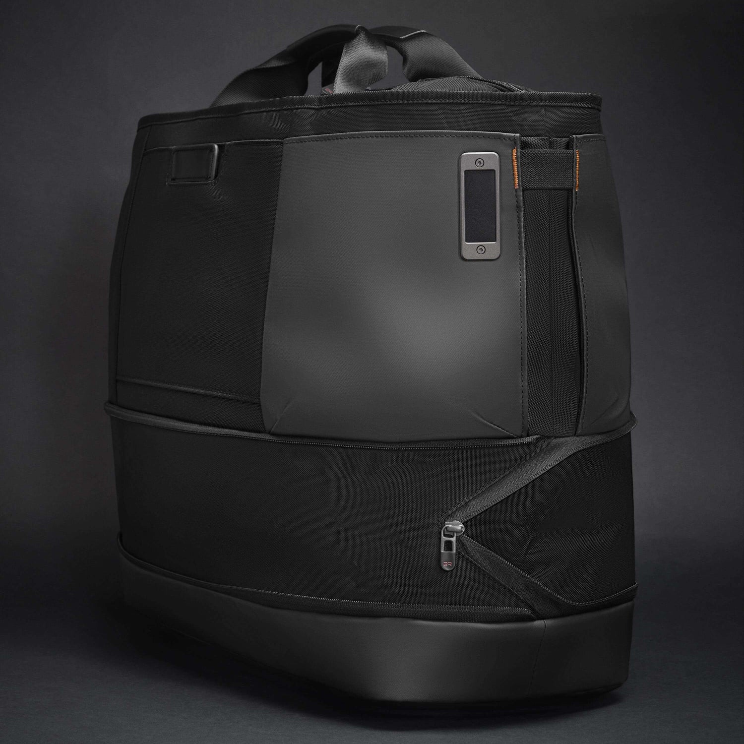 - Stackable 2-in-1 transport with slip-through back strap that slides over any luggage handle.