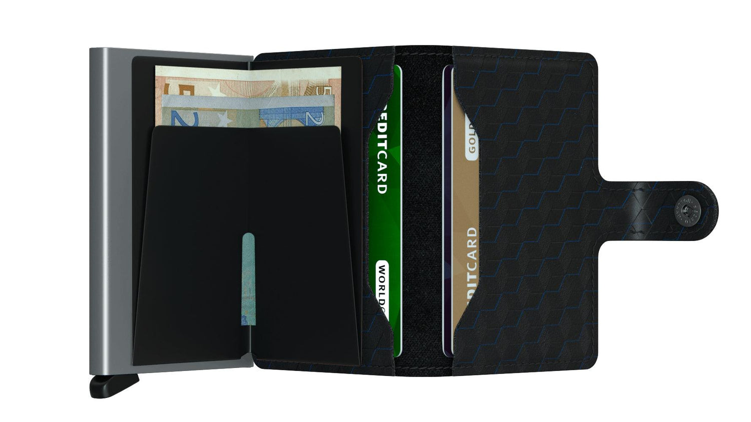 A hexagon pattern consisting of three separate layers of rich finishing reveal a blue highlight in this leather.