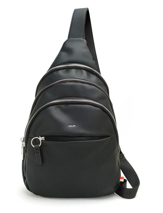 Zipped and ready, this sling has the functionality of a sportier backpack but the look that's way more sleek.