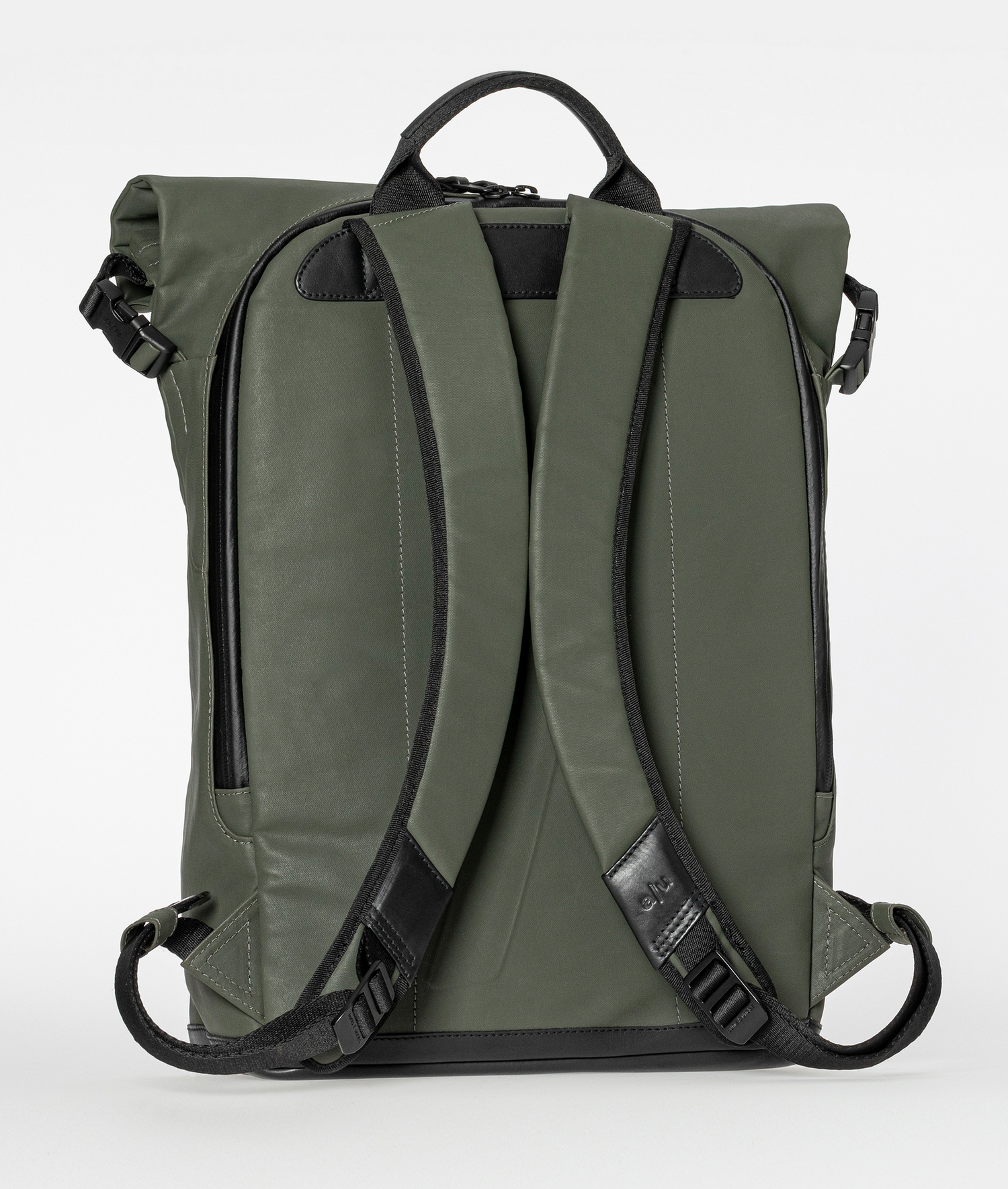Fukui is the larger version of Tokio, also made of silk matt coated cotton fabric, with waterproof zippers and room for a notebook up to 15 inches. For easy and quick handling the sporty backpack has an additional large zip opening on the back. Fukui is suitable for documents in A4 format, making it a reliable companion not only for leisure activities but also for university.