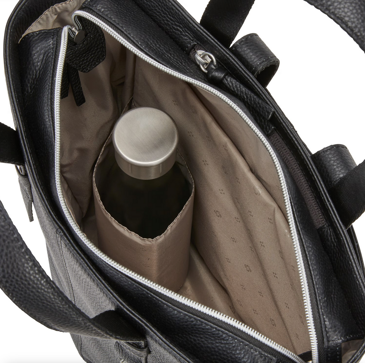 - Interior water bottle pocket