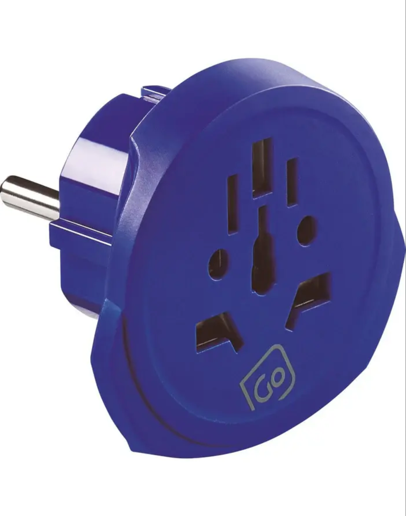 - Universal earthed adaptor for Worldwide travel USB-A & USB-C ports