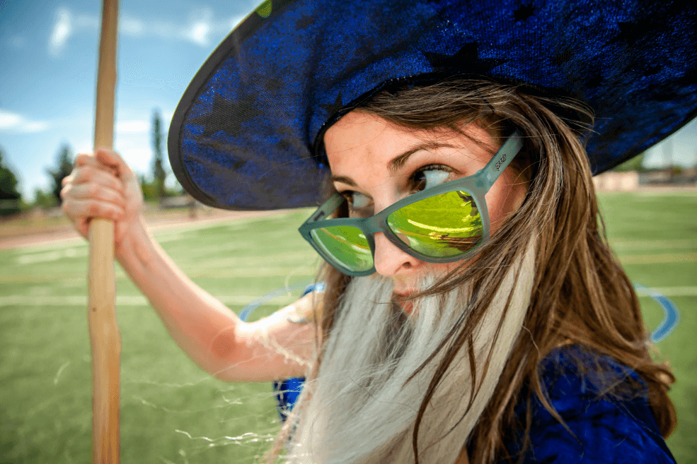 While it might be the magic that gets them all the love, we prefer to celebrate wizards for their panache: capes, pointy hats, and, beards. But just wait until you see one on their beach run rocking these fresh blue shades with gold lenses. Abracadabra, Muggles.