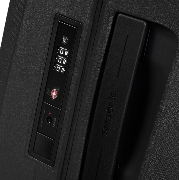 - Samsonite proprietary shock and noise reducing suspension wheels