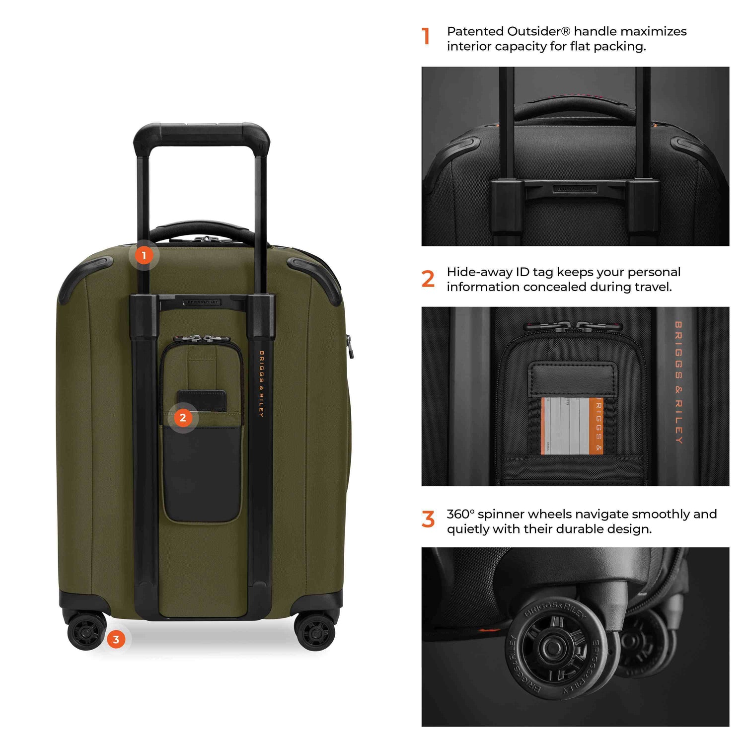 - Patented and iconic, our Outsider® handle provides optimal capacity and a flat packing surface inside to minimise wrinkling.