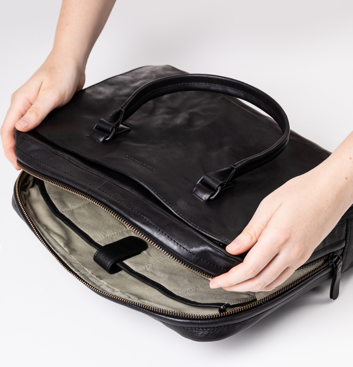 Carefully tanned premium leather and high-quality hardware make Mrs. Quince Pie from Grandma's Luxury Club a sturdy companion for your workday. The triple-divided business bag is the smaller version of Mrs.Plum Tart and makes your work easier with timeless design and plenty of organization. Mrs. Quince Pie has a large main compartment with all-round zipper and two additional large zipper compartments. Documents in A4 size can be easily stored in Mrs. Quince Pie as well as a notebook up to 13 inches, for which a padded compartment is integrated. Small items find a firm place in a removable extra pocket and in well thought-out insertion options.
