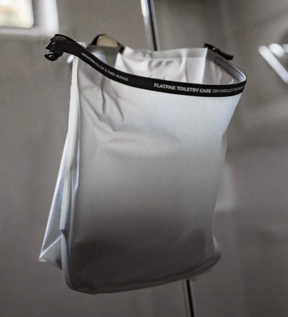 FlatPak™ Toiletry Case is designed for efficient, lightweight travel.  Rolltop design allows the FlatPak™ Toiletry Case to change size seamlessly depending on your needs.  Cordura® with Dry-Through™ technology lets your toothbrush dry through the case, even when closed. Welded construction is fully waterproof.  Simple, clean, and light.  BPA and PVC free.  TSA approved.