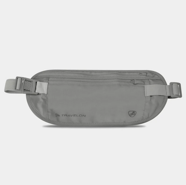 Protect your identity and your valuables with the Travelon RFID Blocking Undergarment Waist Pouch. The undergarment waist pouch has RFID protection to prevent card readers from reading RFID enabled credit, debit cards, and passports. The multi-pocket design keeps your cash, cards, passport, and other valuables safely and securely tucked against your body. Wear it under or over your clothes. The back panel is a breathable air mesh for added comfort.